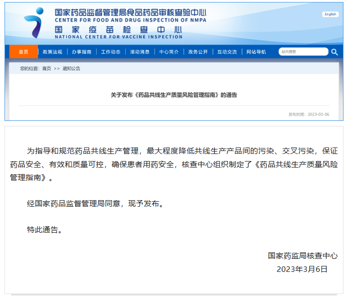 法律法規(guī) | CFDI正式發(fā)布《藥品共線生產(chǎn)質(zhì)量風(fēng)險(xiǎn)管理指南》